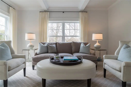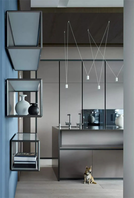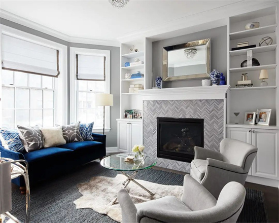 优雅的冰川灰空间,纯净的柔和蓝靠包,当蓝调与灰色调相碰撞,给空间带来的是宁静中正的韵味。没有太过跳跃的色彩,顶多加入一些明亮的金属色泽装饰品,或搭配温暖的晚霞色窗帘,这些活泼的因素却被沉静的烟灰色沙发和地毯所吸收。空间依旧淡雅与平和。